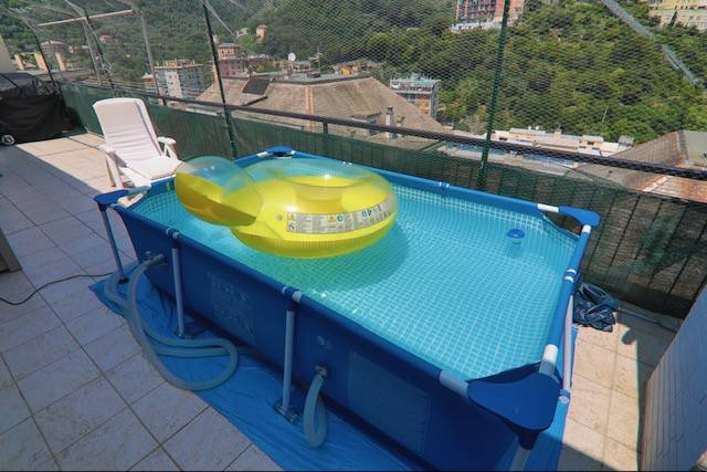 L'ampio terrazzo attrezzato, uno dei punti di forza della casa, consente di godere di momenti all'aperto in totale privacy.