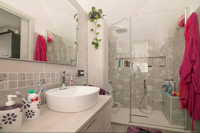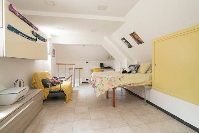 Il piano superiore, mansardato e collegato internamente accessibile anche indipendentemente , offre uno spazio versatile ideale come studio, sala relax o ulteriore camera da letto.