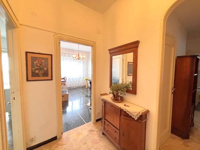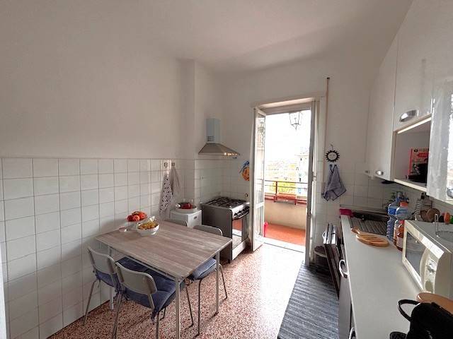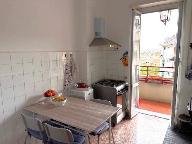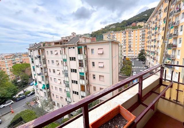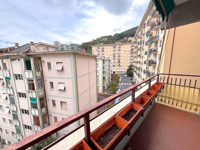 STAGLIENO - VIA DELLE GINESTRE: Proponiamo in vendita in posizione comoda a mezzi e servizi luminoso appartamento di circa 100 Mq ( 6.5 Vani) posto al quarto piano con ascensore di uno stabile in ordine, esposizione silenziosa e riservata. L'immobile si presenta in buone condizioni, internamente così composto: Ingresso con porta blindata, cucina abitabile da cui si accede al primo balcone , luminoso soggiorno con vista da cui si accede al secondo balcone vivibile collegato alla camera matrimoniale, la zona notte si compone da una camera matrimoniale e due singole, servizi e una comoda dispensa. Il riscaldamento è centralizzato a pavimento con spese di amministrazione contenute. Per info e appuntamenti GENOVA REAL IMMOBILIARE VIA QUINTO 84R TEL 0108064307 -VIA ALLA PORTA D'ARCHI 13R 010 80 64 307.