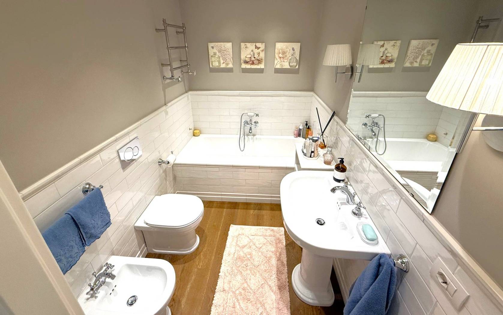 • due bagni moderni, completi di vasca e doccia,