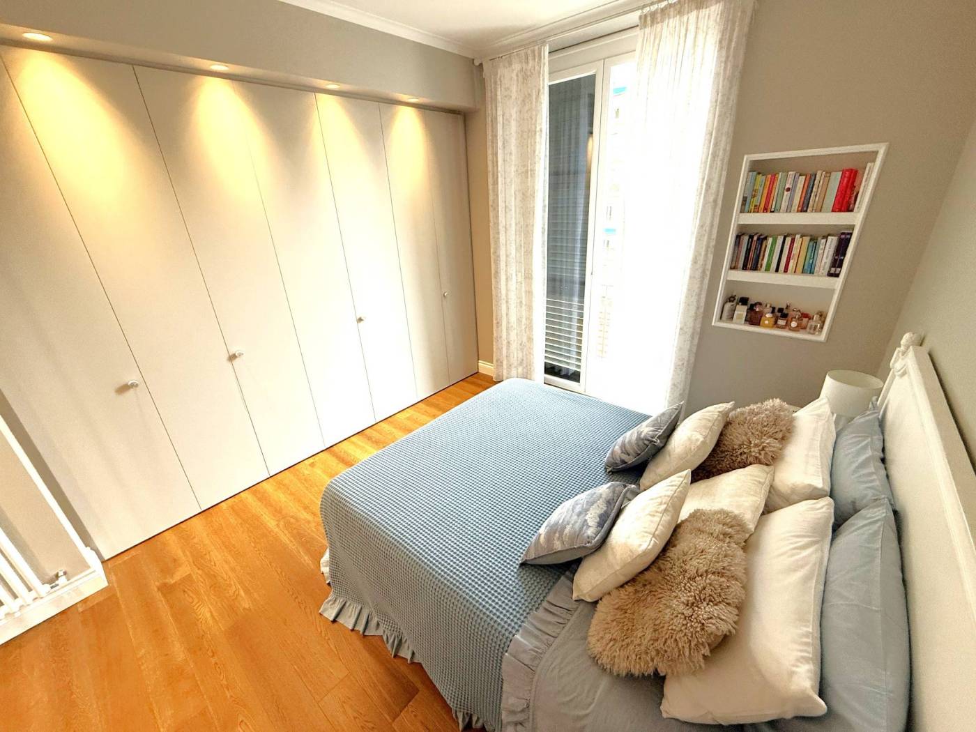 • una camera matrimoniale con grande armadiatura a muro,