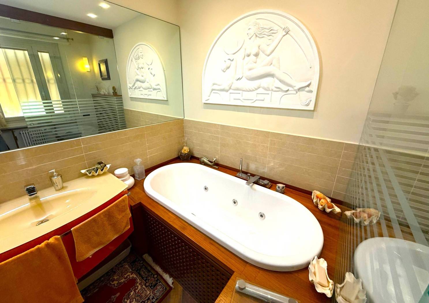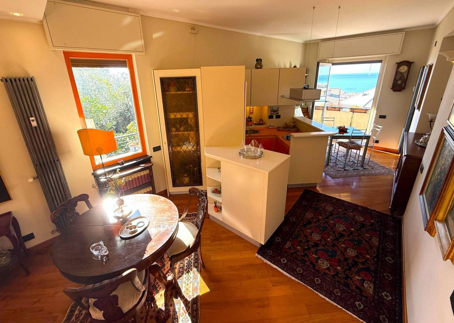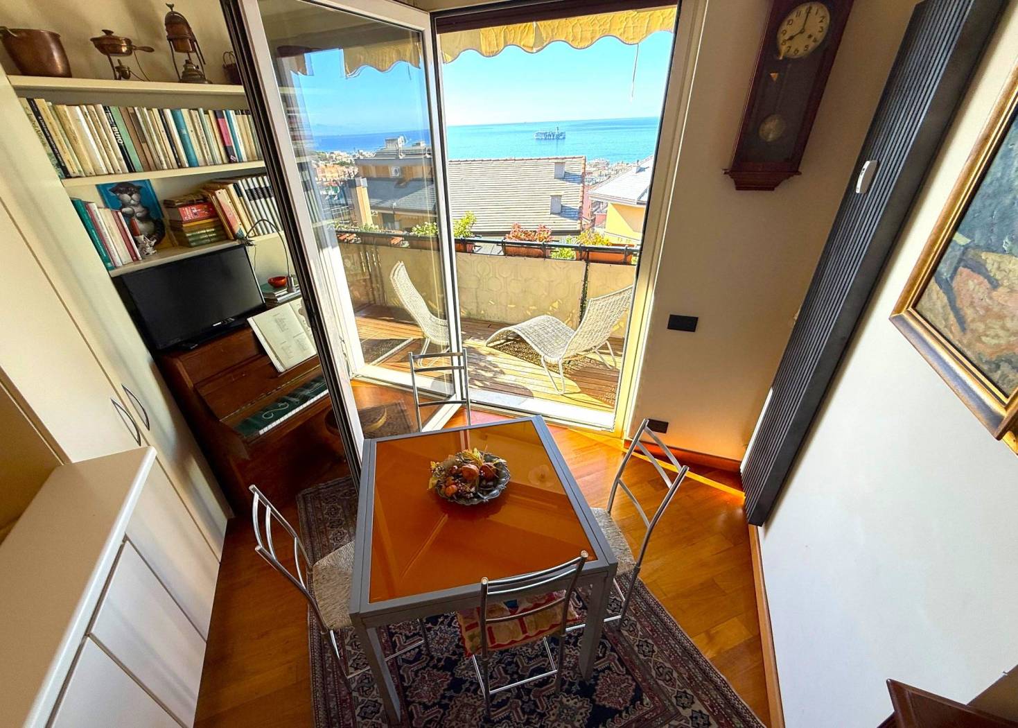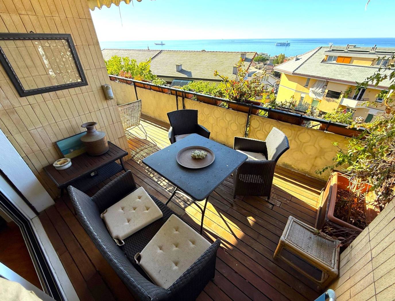 QUINTO - VIA MENDOZZA: In contesto riservato e tranquillo nelle prime alture di Quinto, posizionato fronte mare e immerso nella quiete più assoluta, proponiamo uno splendido appartamento di circa 180 metri quadrati disposto su due livelli, completamente ristrutturato con gusto e materiali di pregio, terrazzo vista mare, grande giardino piantumato attrezzato e ampio e comodo box di 23 metri quadrati. La proprietà gode di ingresso indipendente sia per l'abitazione sia per il grande giardino privato che circonda la casa, offrendo una straordinaria sensazione di privacy e armonia. Gli spazi interni si aprono su un ampio e luminosissimo salone doppio con cucina a vista, con accesso al terrazzino vivibile fronte mare da cui si gode una vista impareggiabile sul golfo. La zona notte comprende quattro camere da letto, uno studio e tre bagni. L'immobile si distingue per la qualità della ristrutturazione, la razionalità degli spazi e la perfetta connessione tra interni ed esterni, garantendo la massima vivibilità in ogni stagione. La posizione è strategica per raggiungere in pochi minuti l'autostrada di Genova Nervi e le principali vie di collegamento, pur mantenendo la riservatezza e la tranquillità di una zona residenziale esclusiva. Soluzione unica nel suo genere, ideale per chi cerca una proprietà indipendente con vista mare, ampi spazi esterni e finiture di alto livello. PER INFO E APPUNTAMENTI GENOVA REAL IMMOBILIARE VIA QUINTO 84R-VIA ALLA PORTA D'ARCHI 13R 010 80 64 307.
